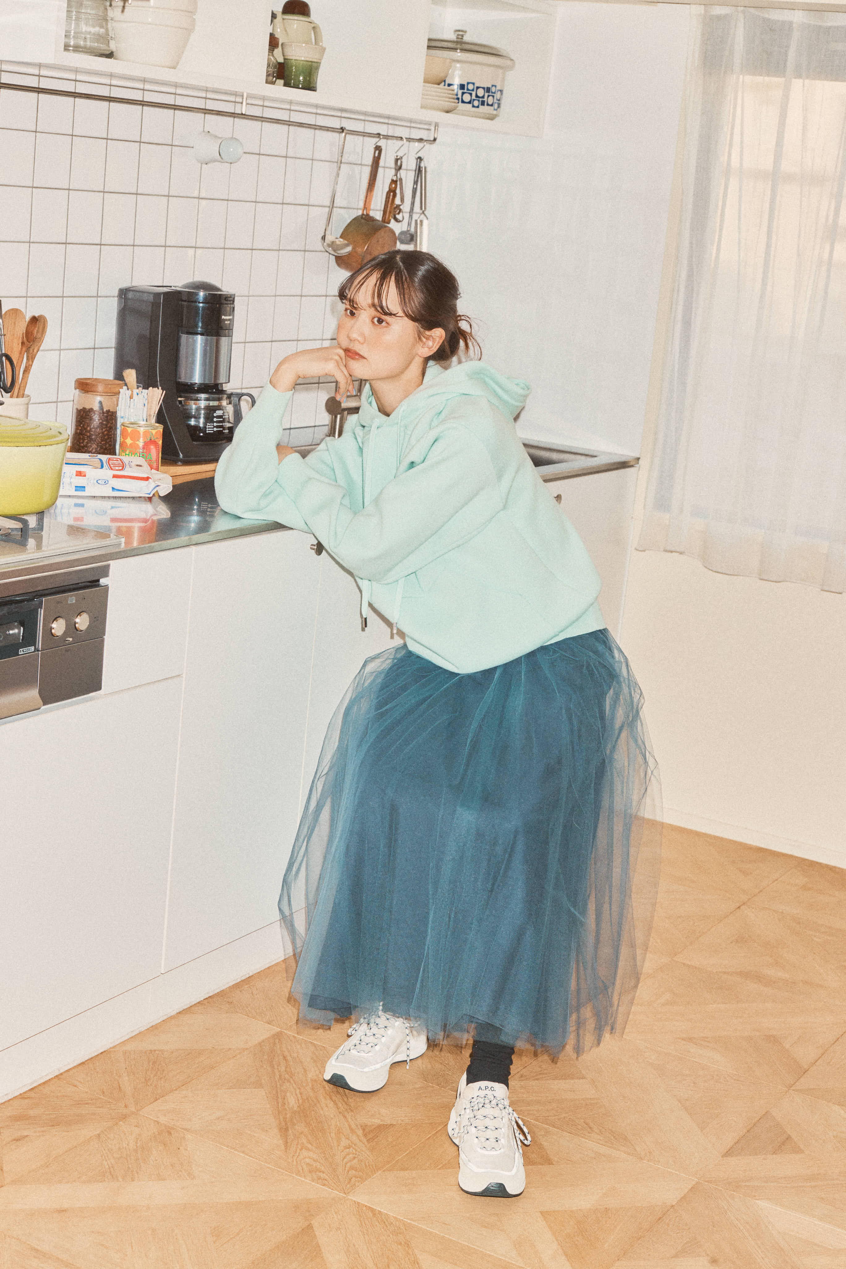 参照:チュールスカートはフーディーで甘さを抑えて着よう。【FUDGE 4月号連動企画-売り切れ必至の人気もの | DAY 03】