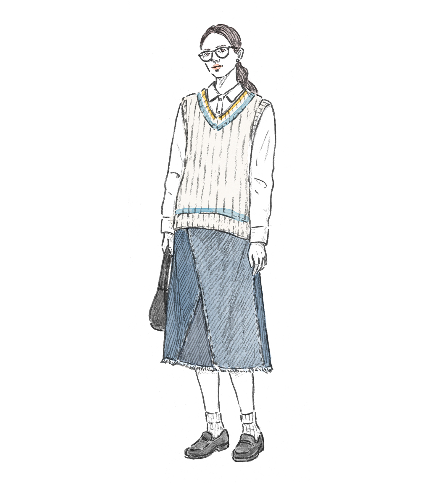 そもそもは、ヒッピーやパンク・ファッションの象徴であった、「カットオフ」アイテムですが、FUDGE GIRLには、あえてきれいな着こなしを提案させてください。参考になるのは、おしゃれで知られる、エディター、ヴェロニカ・ハイブルンナーのコーディネート。以前パパラッチされたとき、「カットオフ」のデニムスカートに、テニスニットを合わせ、中にはボタンをきちんと閉めた白シャツをインしていました。足元は白ソックス+ローファーで、いわばスクールガール風です。でも、そこはさすがベロニカ。裾がフリンジになった「カットオフ」デザインをセレクトしたことで、こなれたムード満点に。