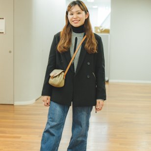 あえて太めのデニムと合わせてアメリカの男の子みたいに着るのが可愛い。
