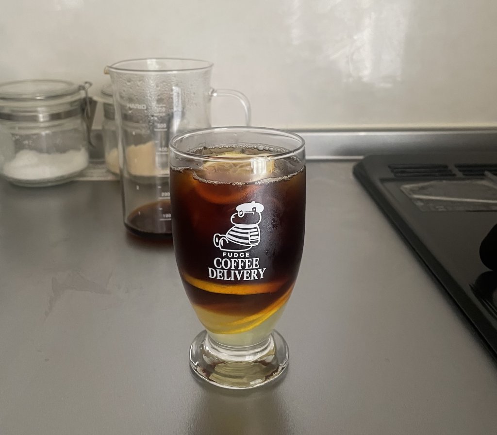 最近ハマってるレモンコーヒーです🍋グラスに自家製のレモンシロップとたっぷりの氷をいれ、少し薄めに淹れたコーヒーで割ります。今回は苦味を楽しみたかったので濃いめに淹れました◎