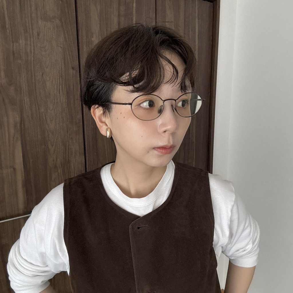 ショートカットと丸眼鏡が特徴のボーイッシュ系インフルエンサー。