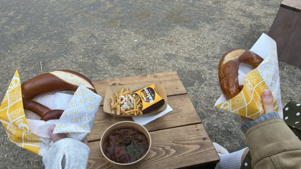 トリュフチーズポテト、ビーフシチュー、プレッツェル🥨
