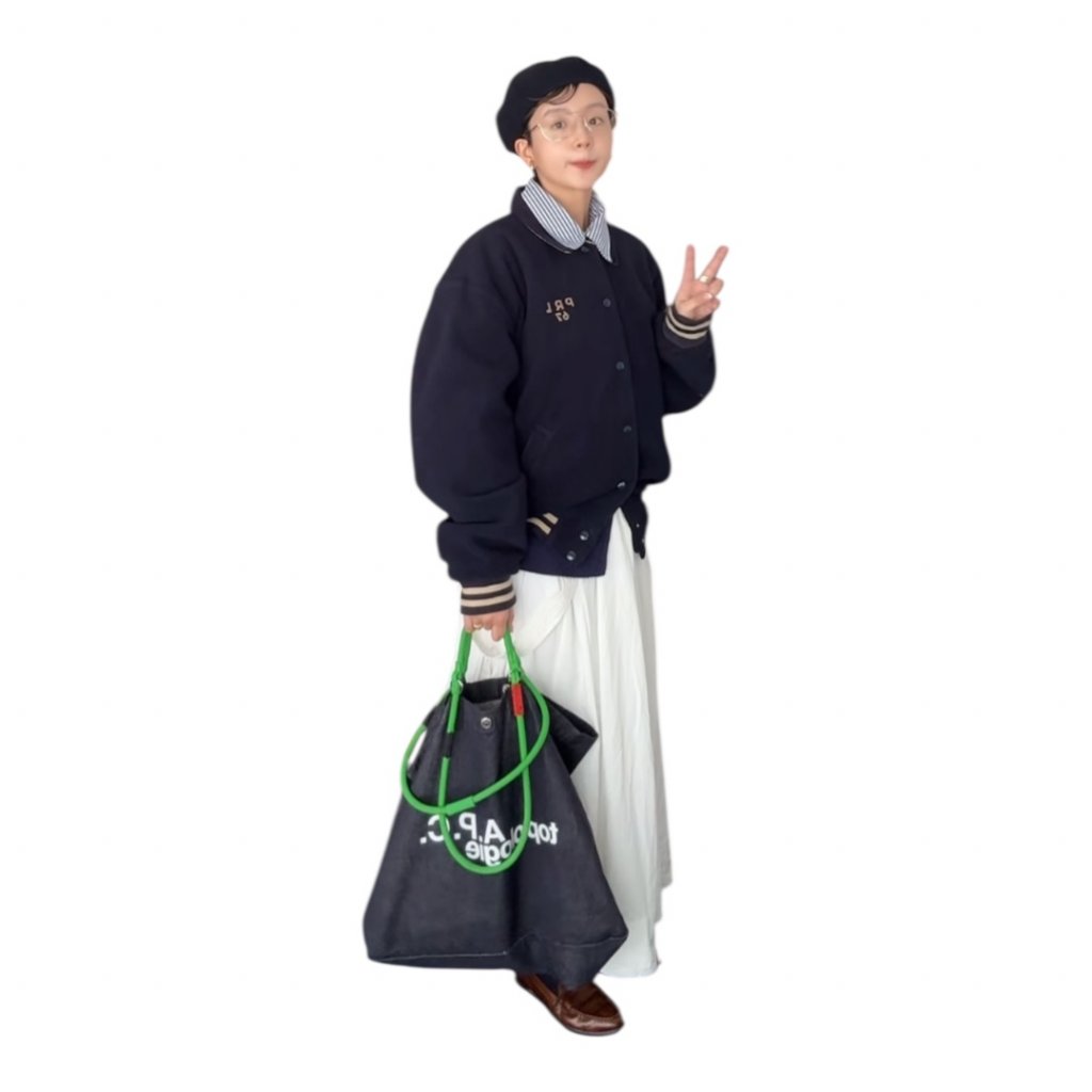 メンズライク感が出るアイテムとスカートのMIXはより一層オシャレを楽しめます。