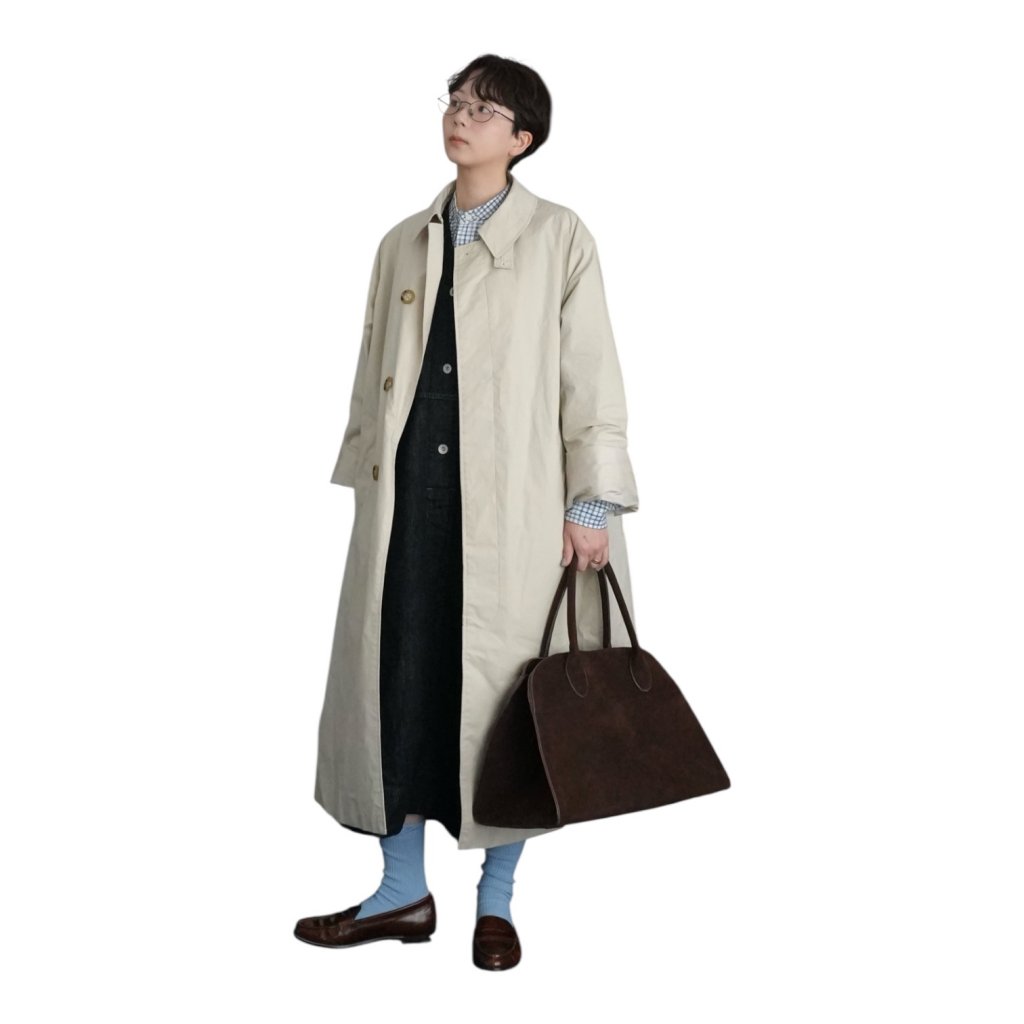 やっぱり春はステンカラーコートを着たい!ということで明るめのアウターに黒のジャンスカを合わせたスタイル。