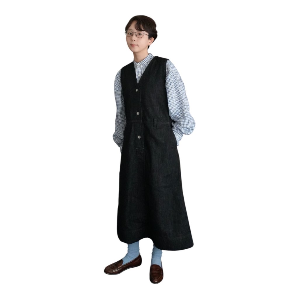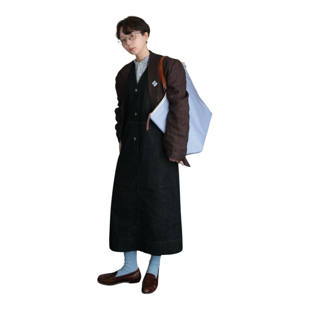 デニム素材のジャンパースカートだからこそ出せる味わいと大人なかわいさを出せるのがお気に入り。