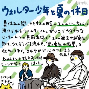 最初のうちはお互いに距離感が分からなかったり、接し方に戸惑ったりしていたけれど、おじいちゃんたちの人生や過去の武勇伝を聞いたり、抱えているものについて知っていくなかで、ウォルターくんも少しずつ成長していく。そんな爽やかで温かい映画。ラストシーンの描き方も、なんて潔いんだ!と、見終わったら自分自身もちょっと成長できたような気がしたよ。