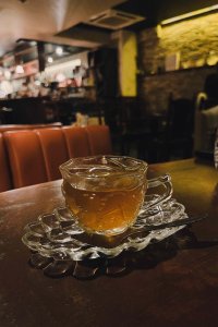この日はホットジンジャーを注文。グラスなども全部デザインがレトロで可愛い!