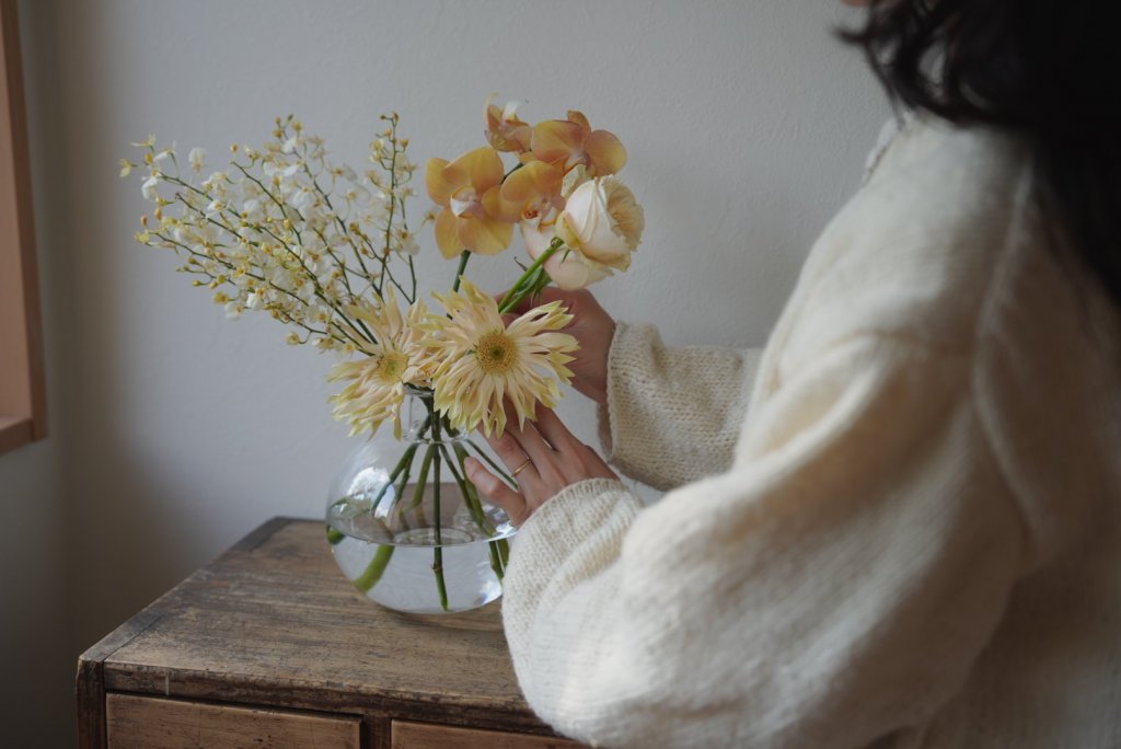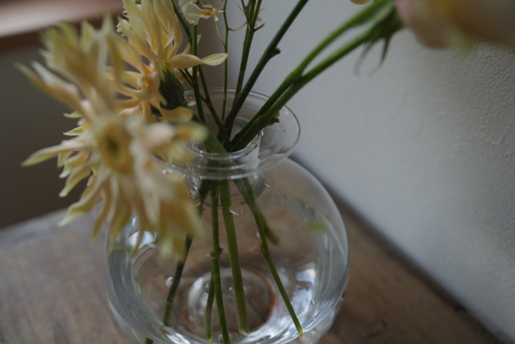 ころんと丸いフォルムが可愛いヴオッコ コレクションのフラワーベースに、