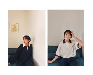 家で制作やお仕事をすることが多いので、楽で動きやすいお洋服が好き。でも「シンプルすぎるとつまらない、重ね着をすると動きづらい…」と日々悩んでいたところ、襟が配色されたシャツが1枚で着れて可愛いかも!と発見した。