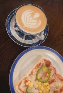 レコードが流れるお店で、カフェラテをお供にお喋りに花が咲く。話題は、最近友達が始めたというボクササイズのこと、今年行って楽しかった旅行の話、一緒に通っていた中学校時代の思い出、「わたし実はキャロットケーキ大好きやねん」という突然の告白。(このお店にもキャロットケーキがある)