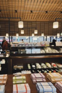訪れたのは、寺町三条を少し北にあがったアーケードの中にある『鳩居堂』。観光客にも人気のお店で、京都らしい和紙などを使った一筆箋や上質な筆、文箱、お香がキリリとした空気の店内に並んでいる。