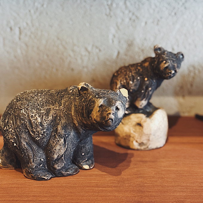 店内で思わず目があって、足を止めてしまったのがこの”くま”の置物です。スウェーデンの職人さんの手によって生まれたこの子は、石のような、土のような、独特なざらりとした質感をしていて、木彫りのくまとも違った魅力がありました。そして何より、この表情。どこか寂しげで、どこか優しげで、困った顔にも見えたり、そんななんとも言えない雰囲気に一瞬で心を掴まれてしまいました。