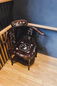 店内の階段に飾られていた椅子もレトロで可愛かった