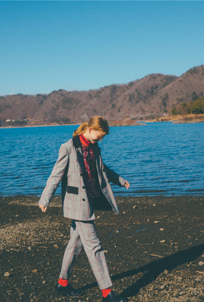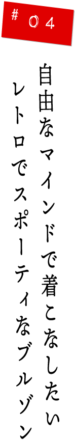 美しいテーラリングが光るダブルジャケットと、タイトなパンツの組み合わせがとことんジェントルなセットアップ。あえてスポーティなブルゾンを合わせ、ハズシを加えるのがコーディネートのポイントです。甘辛コーデを引き締める、赤ソックスも忘れずに。
