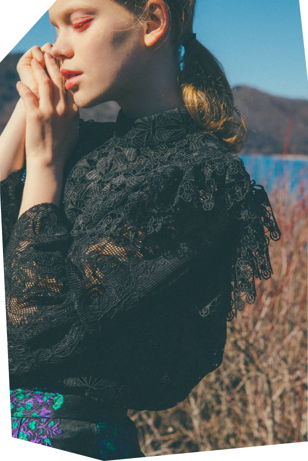 美しいサテンパンツは、「TOSSED BOUQUET」という名の通り、花束のような華やかなモチーフを光沢感とハリ感のあるジャガード素材で表現。繊細なレースのブラウスと合わせて、思いっきりロマンティックに着こなすのがおすすめです。