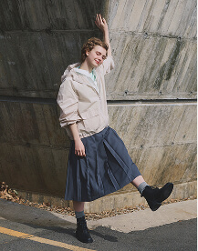 優等生なグッドガールも、時に遊び心が必要です。そんな時におすすめしたいのが、ナイロン素材の軽やかなパーカジャケット。白シャツ×プリーツスカートの端正な着こなしに羽織るだけで、印象ががらりと変わります。まだ少し肌寒いなんて日も、1枚あれば大活躍の予感。