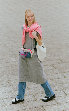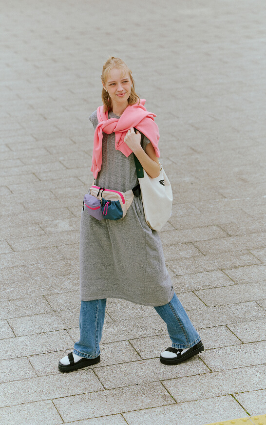 ワンピーススタイルにボディバッグで遊び心をプラス