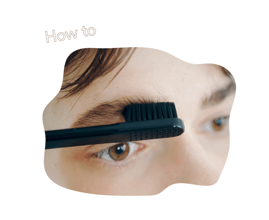 1.眉の形を一気に整える《ADDICTION》のグルーミングブラシで大胆に眉頭を立ち上げる。中央から眉尻にかけては扇状に広げるように形を整える。