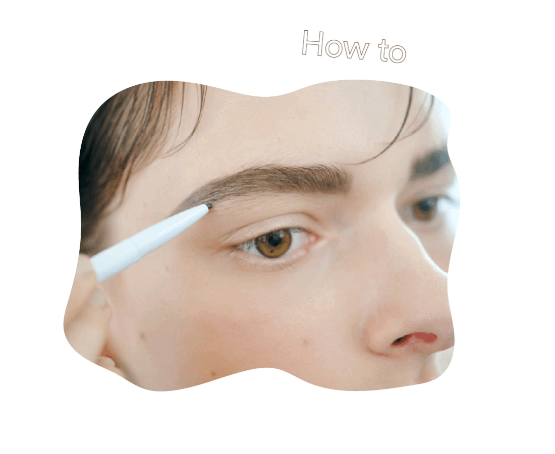 4.眉頭から眉山までを毛並みに沿って細いアイブローペンシルで毛を描き足すように隙間を埋めていき、眉尻のラインは先が細くなるようになぞる。