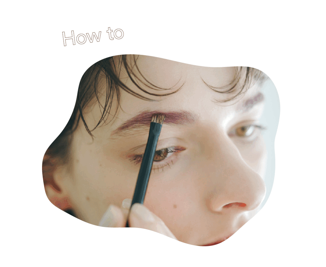 ボーイズ眉は輪郭と立体感が命。まずは眉下のラインから同色のアイブロウパウダーとペンシル、アイブロウブラシを使って丁寧に濃淡を作りながら整えて。