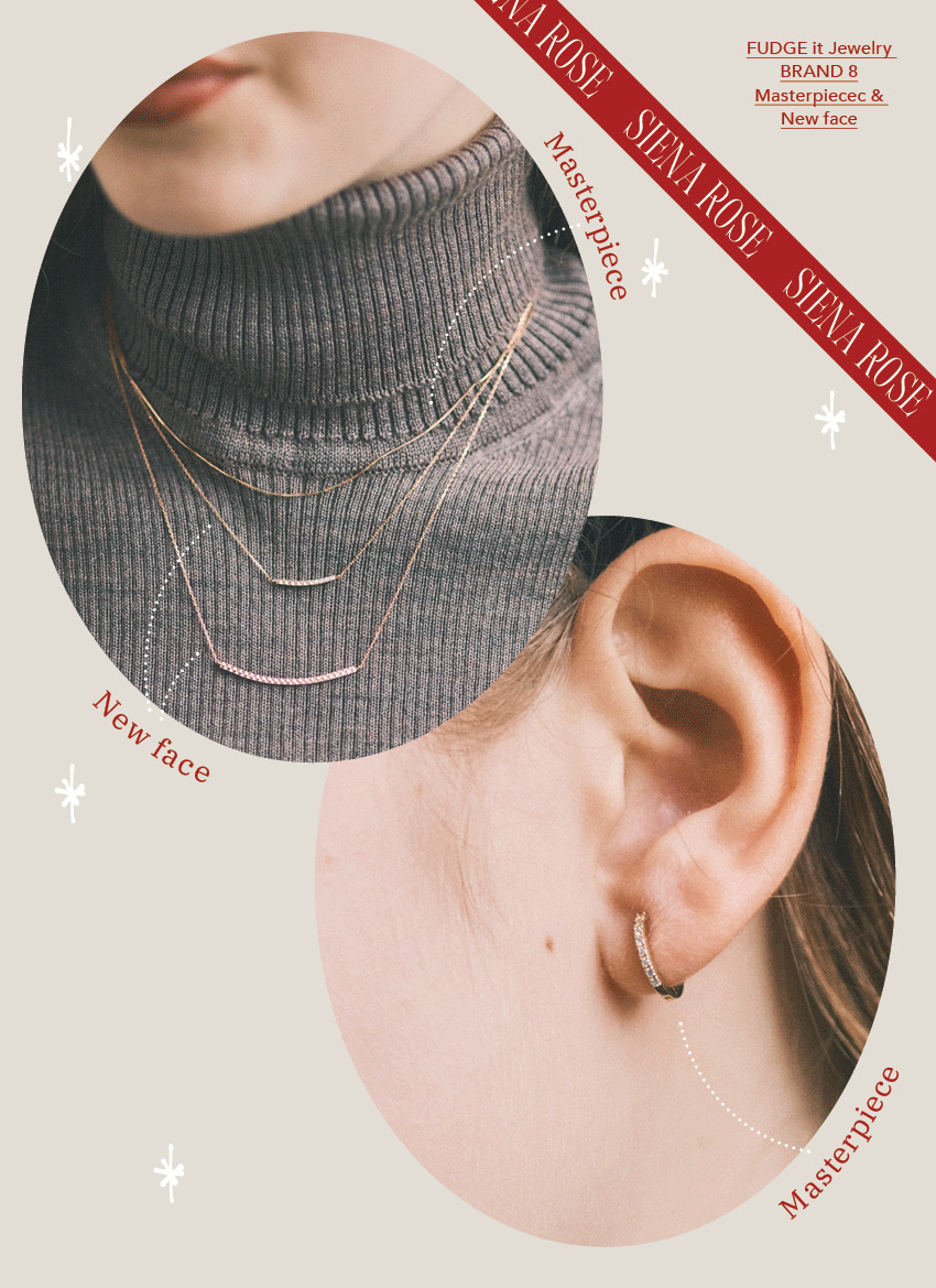「毎日メイクをするように、ジュエリーを身に着けて」をコンセプトに、素肌に溶け込むように華奢で繊細なデザインが魅力の《SIENA ROSE(シエナ ロゼ)》。毎日身に着けたくなる、控えめながらも存在感のあるスキンジュエリーの重ねづけをご提案。