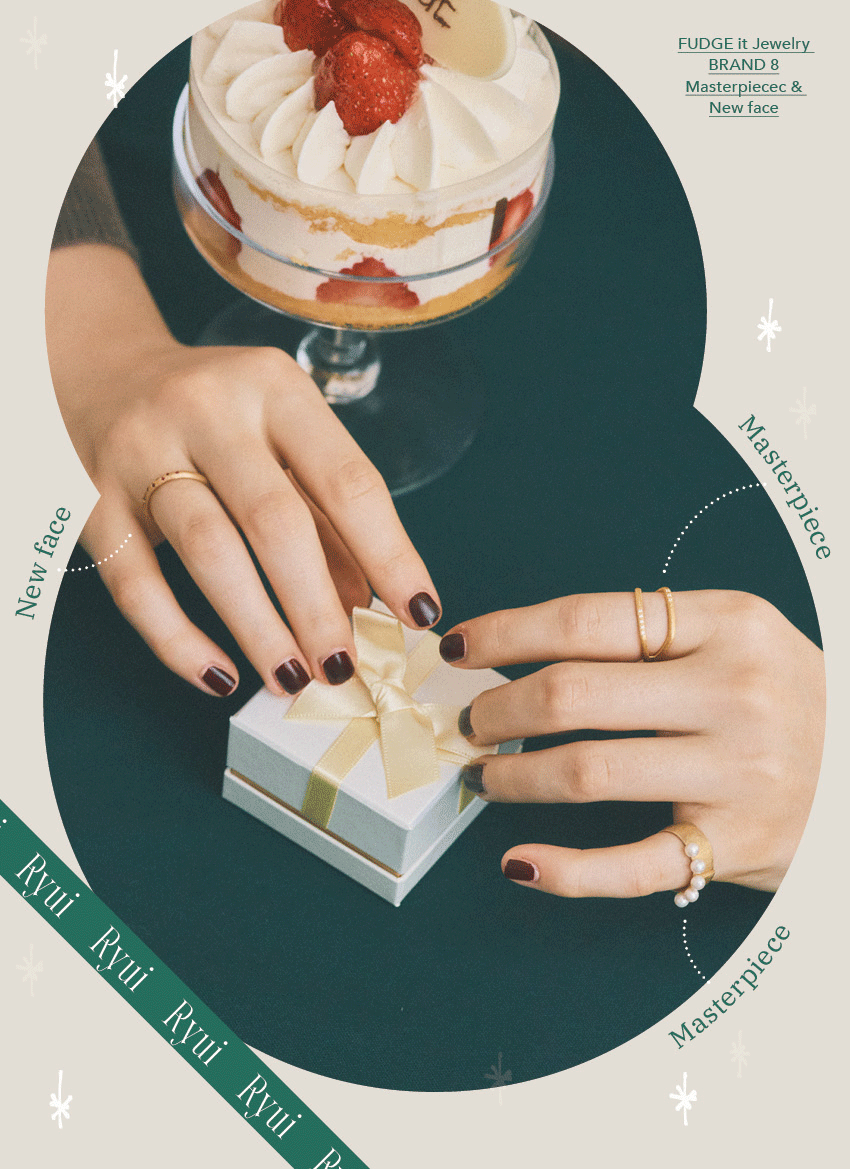 “Master piece”は、ブランドのアイコンでもある“Baby Vine Rings“。蔦をイメージした鮮やかなエナメルの曲線にストーンとゴールドを蕾のようにトッピング。目に入る度に笑顔になれるキャッチーなデザインで、まるで指先にアート作品を飾っているような感覚に胸が高まります。