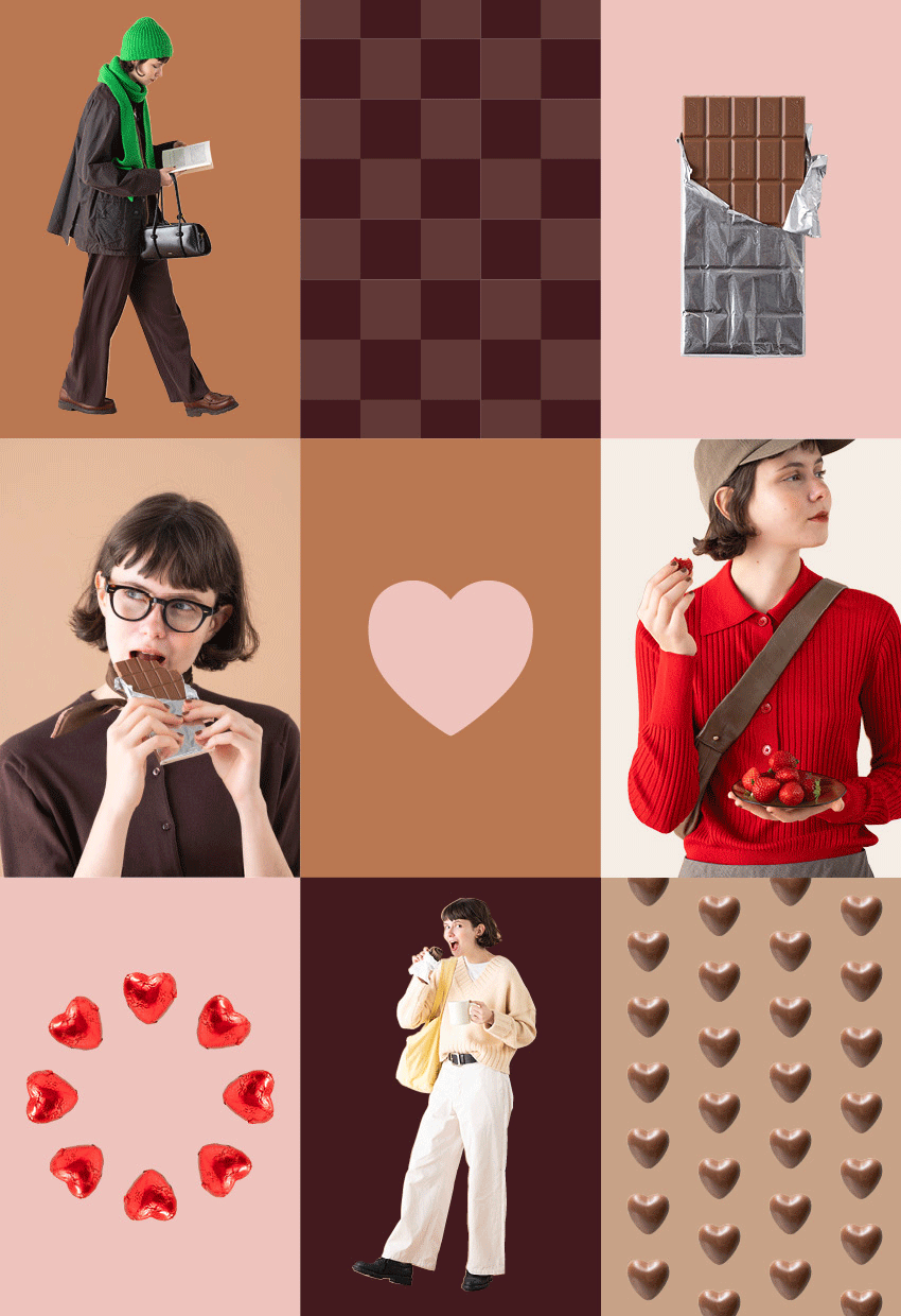 ファッションにもチョコレートカラーを取り入れて、いっそチョコレート尽くしを楽しんでみるのはどう?