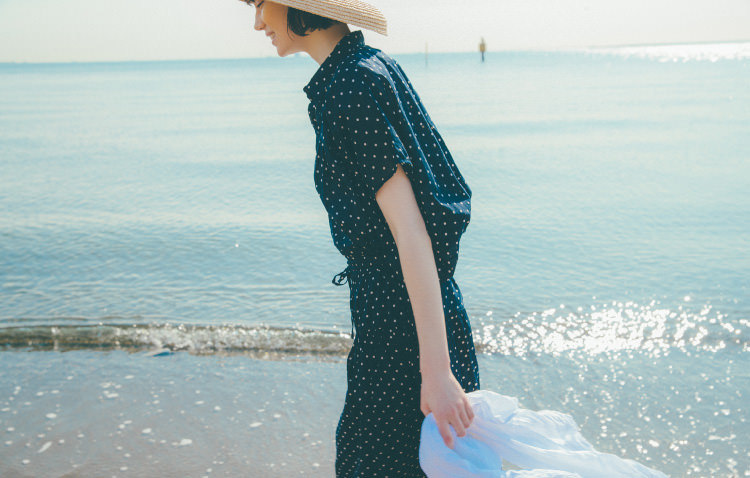 パリジェンヌが愛してやまないドット柄アイテムも、一枚でさらりと着られるワンピースならば合わせやすい。バスクシャツを首元からチラリと覗かせた柄on柄コーデで、よりこなれ感たっぷりの上級者な着こなしに。