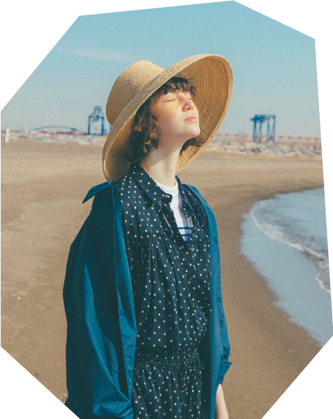 パリジェンヌのバカンスの定番、つば広ハット&ワンピースをFUDGE流に味付け。トレンドのシアーなシャツワンピースには、ノースリーブワンピースを重ねて鮮度をさらにUP。全身をネイビーのワントーンでまとめつつ、足元は白のスニーカーで抜け感を出すとバランスよく仕上がります。