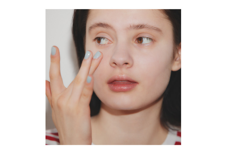 パウダータイプのアイシャドウを指で下地の上に重ねるようにつける。ブラシやチップではなく指塗りすることで、今っぽい抜け感のある仕上げに。