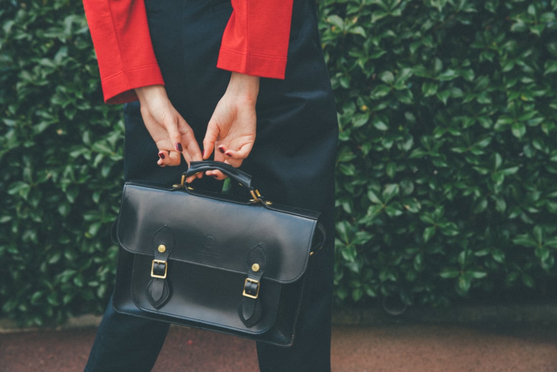 スクールスタイルに欠かせない、英国の伝統的な”学生カバン”であるサッチェルバッグ。シックで重厚感のある黒を選べば、耐久性と機能性も相まって長らく愛用できるはず。