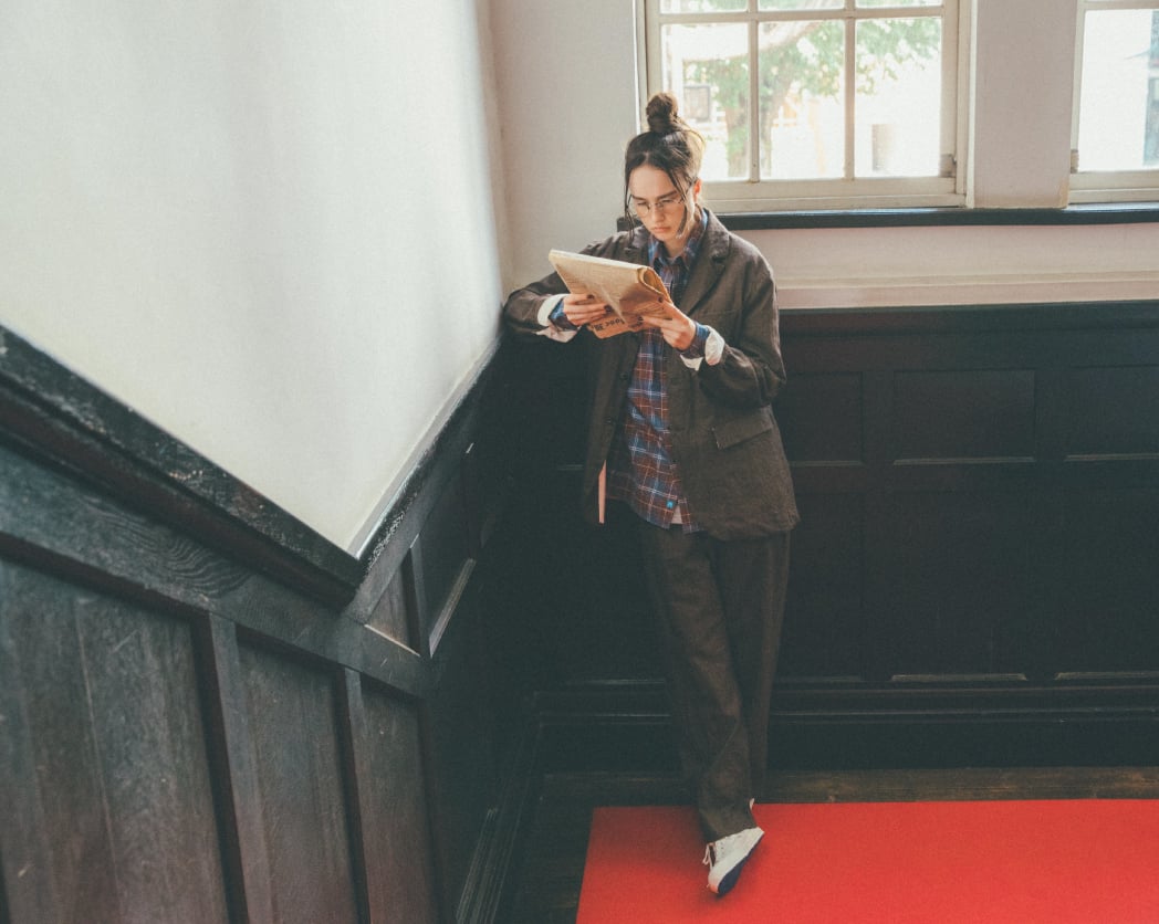 ジャケット¥74000、パンツ¥48000/ともにYAECA WRITE(ヤエカ)、シャツ¥14000/KATO`(チームキット カンパニー)、シューズ¥9000/MOONSTAR(ムーンスター カスタマーセンター)、その他 スタイリスト私物