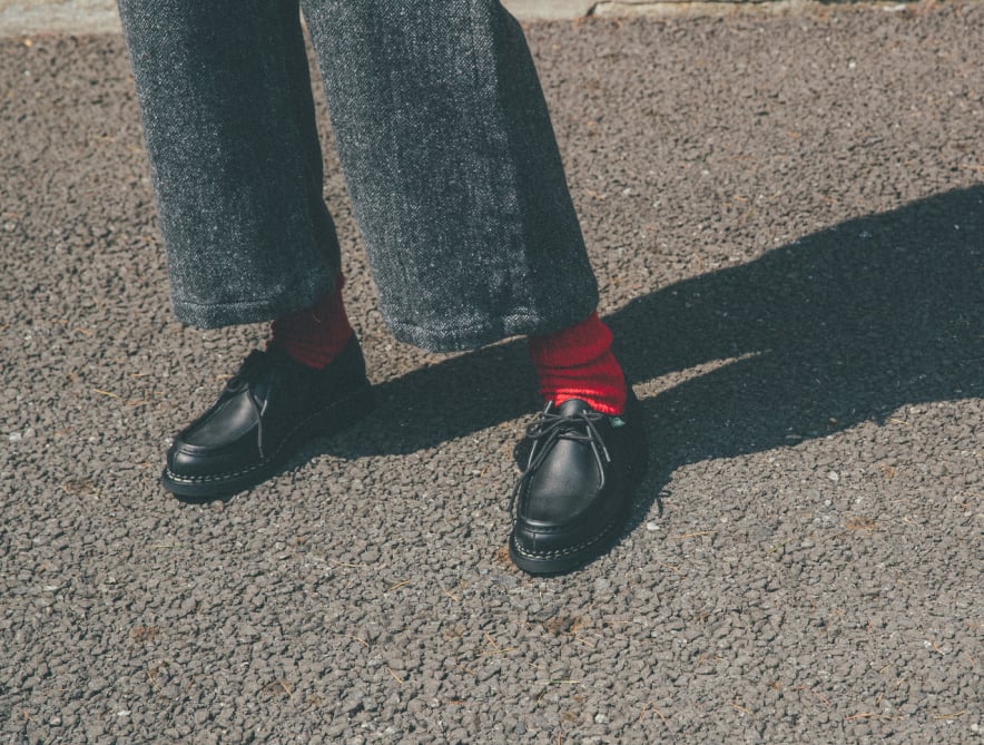クラシックスタイルのスパイスになる、真っ赤なソックス。クロップドパンツやロールアップでソックスをちらりとのぞかせて、コーデにピリリと効かせよう。