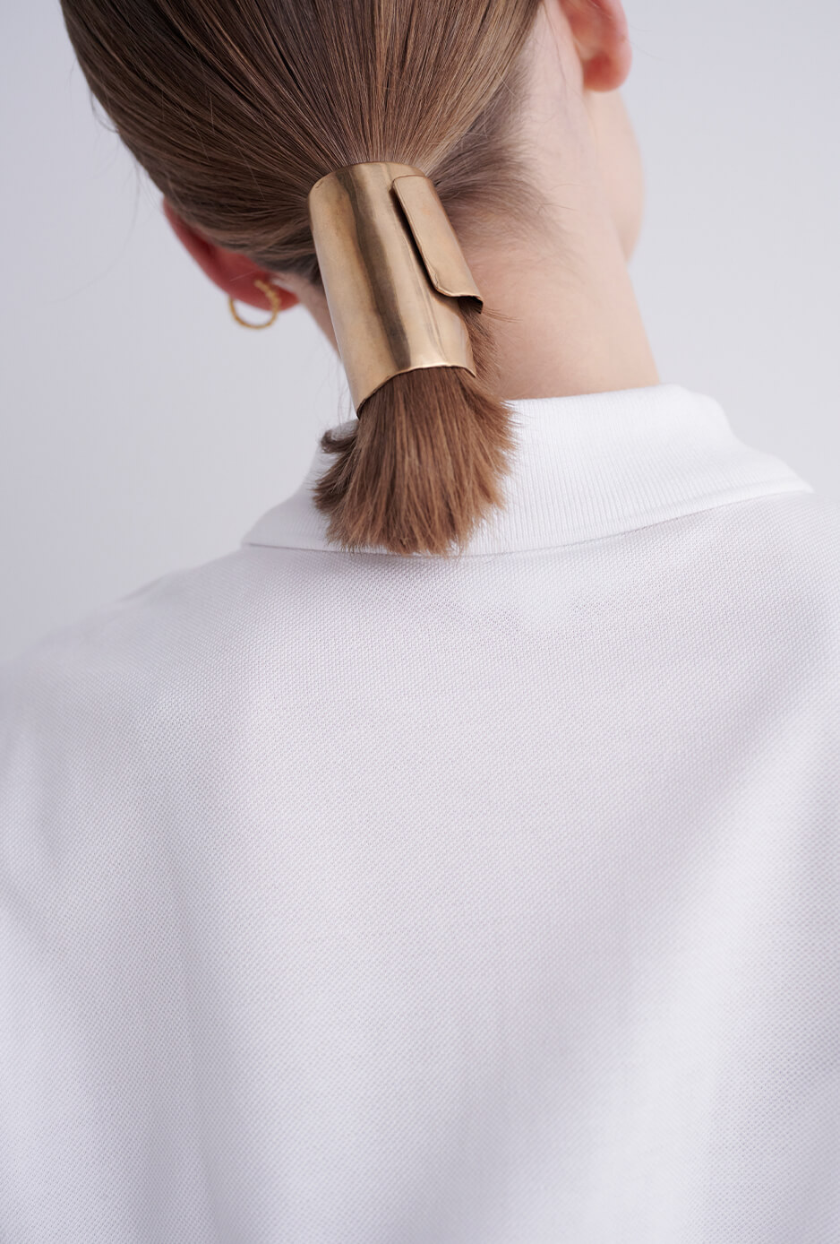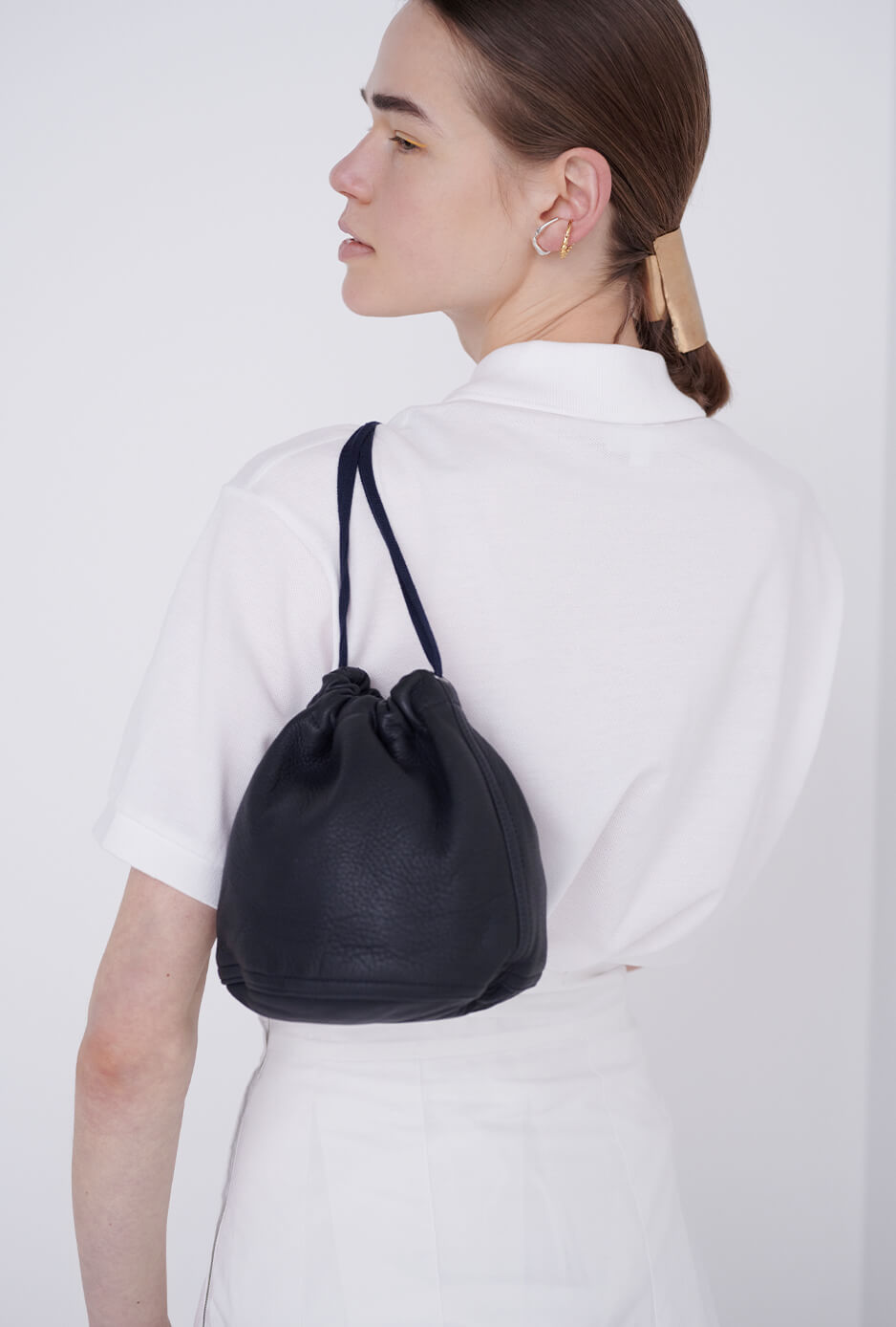 シックにまとめたコーディネートも、スポーツサンダルを合わせてカジュアルダウン。ヘアアクセ2個セット¥66000/PLUIE(プリュイ トウキョウ)、イヤカフゴールド¥17380、イヤカフシルバー¥16280/ともにKNOWHOW(ノウハウ ジュエリー)、バッグ¥15,400/FILL THE BILL(フィル ザ ビル マーカンタイル 青山)、サンダル¥8250/HIーTEC(ムーンスター カスタマーセンター)