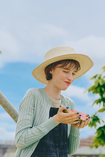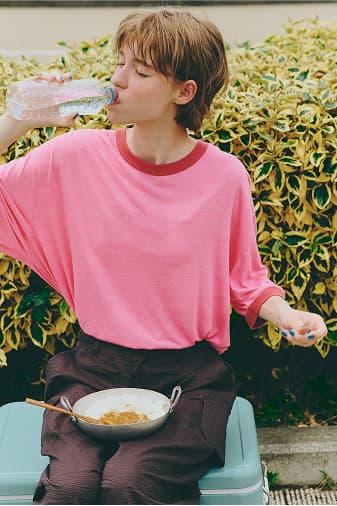 ( WORLD SNAP )華やかなオレンジのニットは3月下旬の季節の変わり目にぴったり