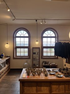 整然と並んでる器やアパレルと共にゆったりとした時間が流れています。