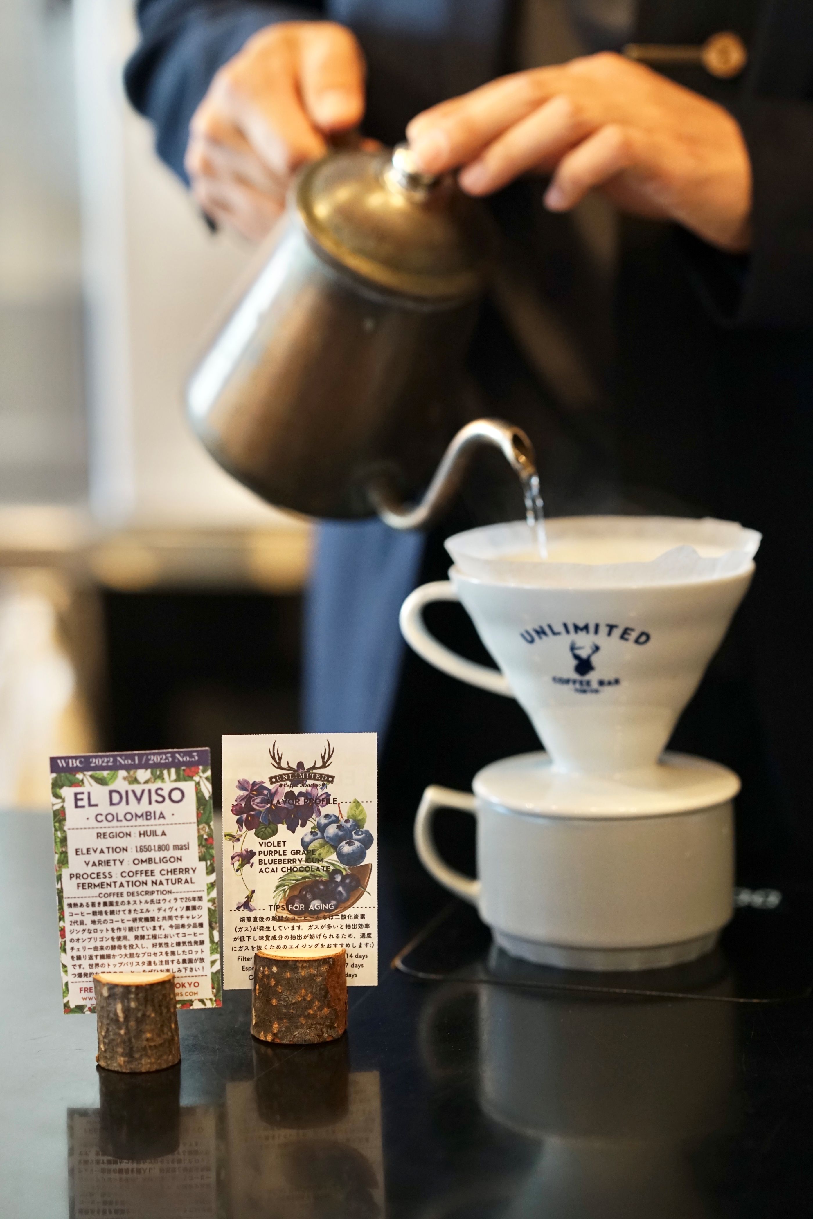 コロンビアのエル・ディヴィソ農園は、バリスタ世界大会で過去3度も優勝した今最も注目の農園。その中でも希少なオンブリゴン品種を緻密な発酵工程を経て仕上げたロットです。ブルーベリーやグレープ、アサイーチョコレートを感じるような複雑なフレーバーと酸味はコーヒーの概念を覆します。ぜひ一度お試しください!