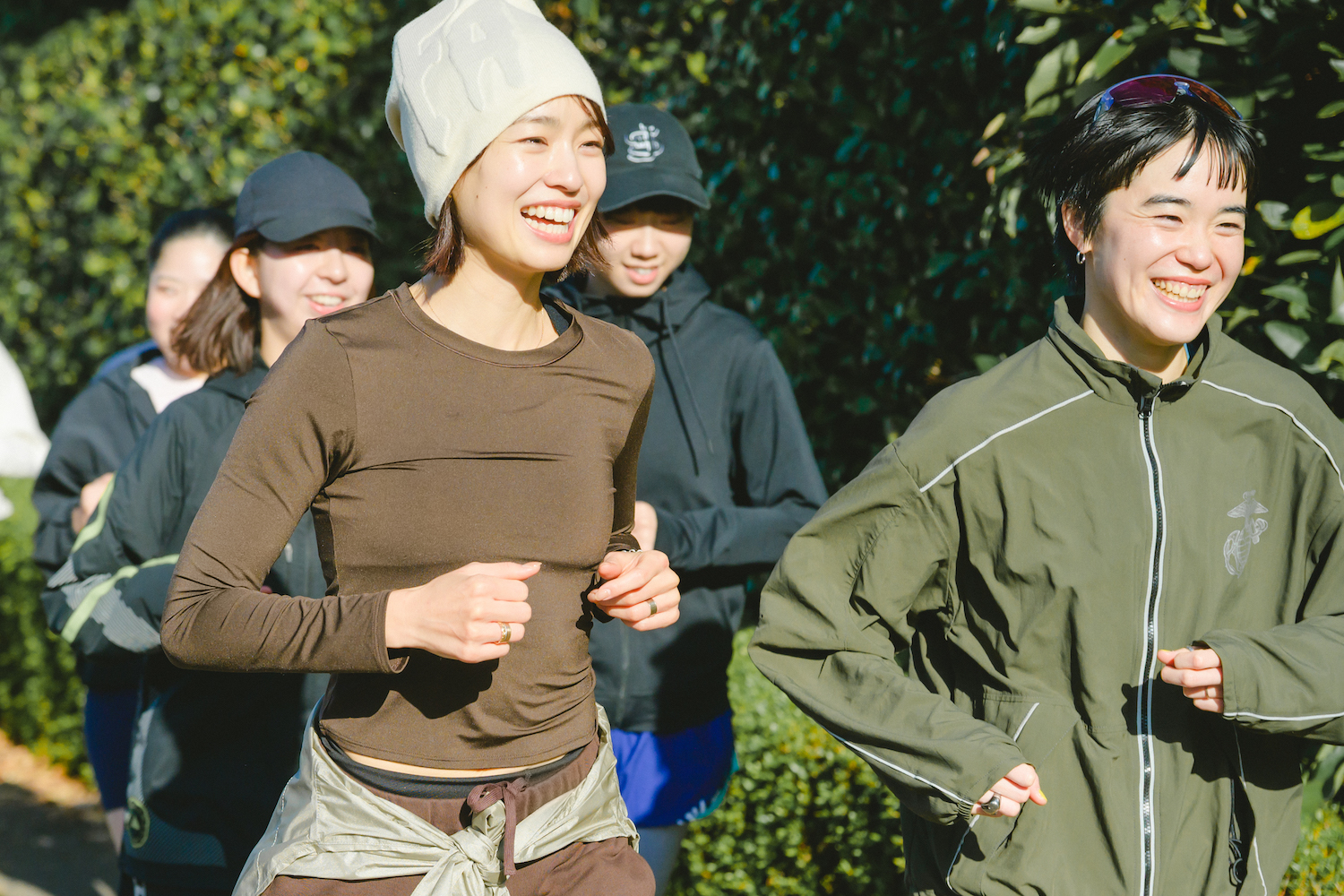 今回の会場は、旧池尻中学校を活用した複合施設〈HOME/WORK VILLAGE〉。2025年7月のオープン以降、フード・ショップ・ブックラウンジ・ギャラリーなどが続々登場し、感度の高い人たちから注目を集めるスポット。目の前に広がる世田谷公園でジョグを楽しみます。