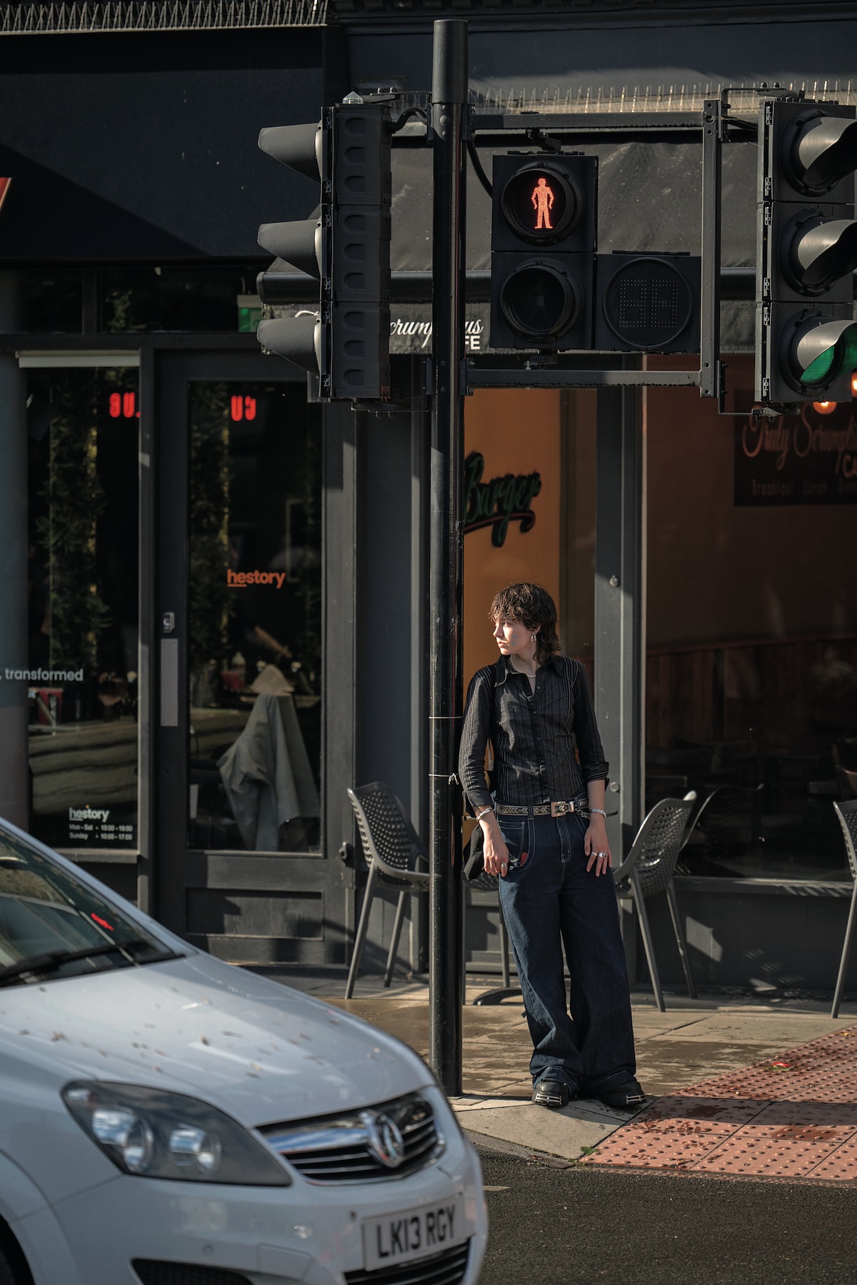 シャツ/Vintage、デニムパンツ/Criminal Damage、ベルト/Vintage、ブーツ/New Rock
