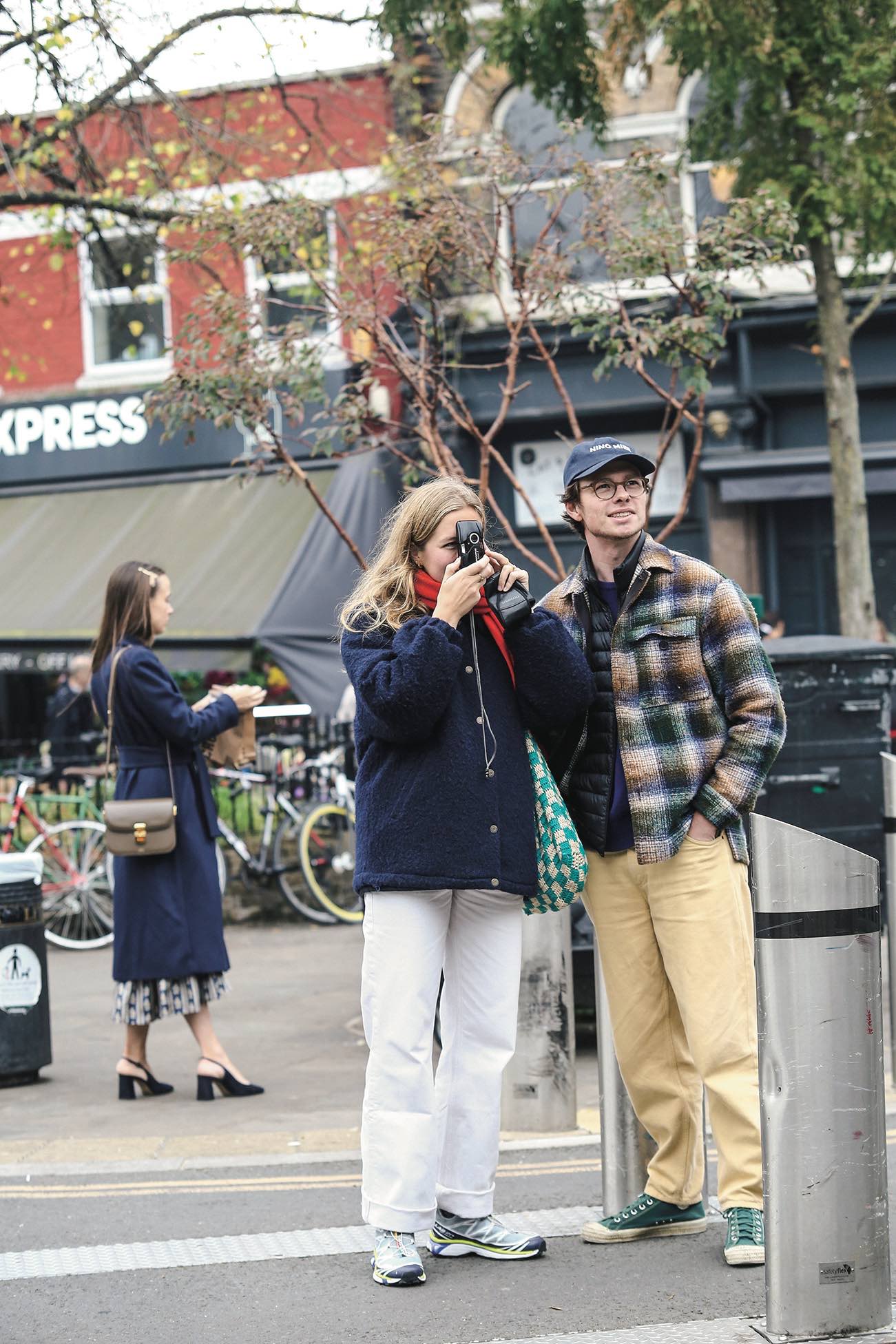 ジャケット、パンツ/ともにvintage、ストール/COS、バッグ/PULL&BEAR、スニーカー/Salomon