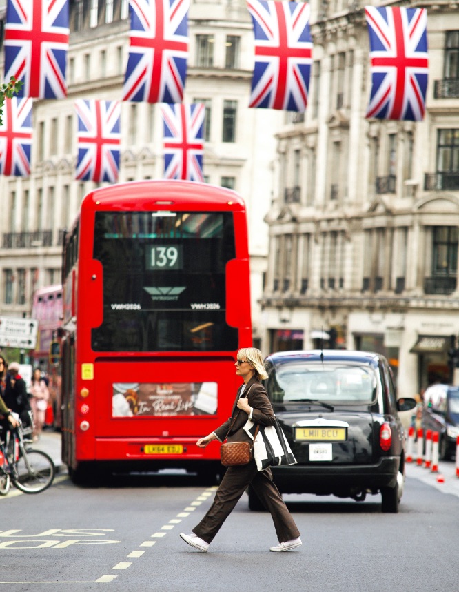 中心街・オックスフォードサーカスで見つけた見惚れるような歩き姿。チェック柄セットアップに身を包み、コンバースやトートバッグでカジュアルにハズす……引き締める部分と力を抜く部分のメリハリバランスは、まさにお洒落上級者。