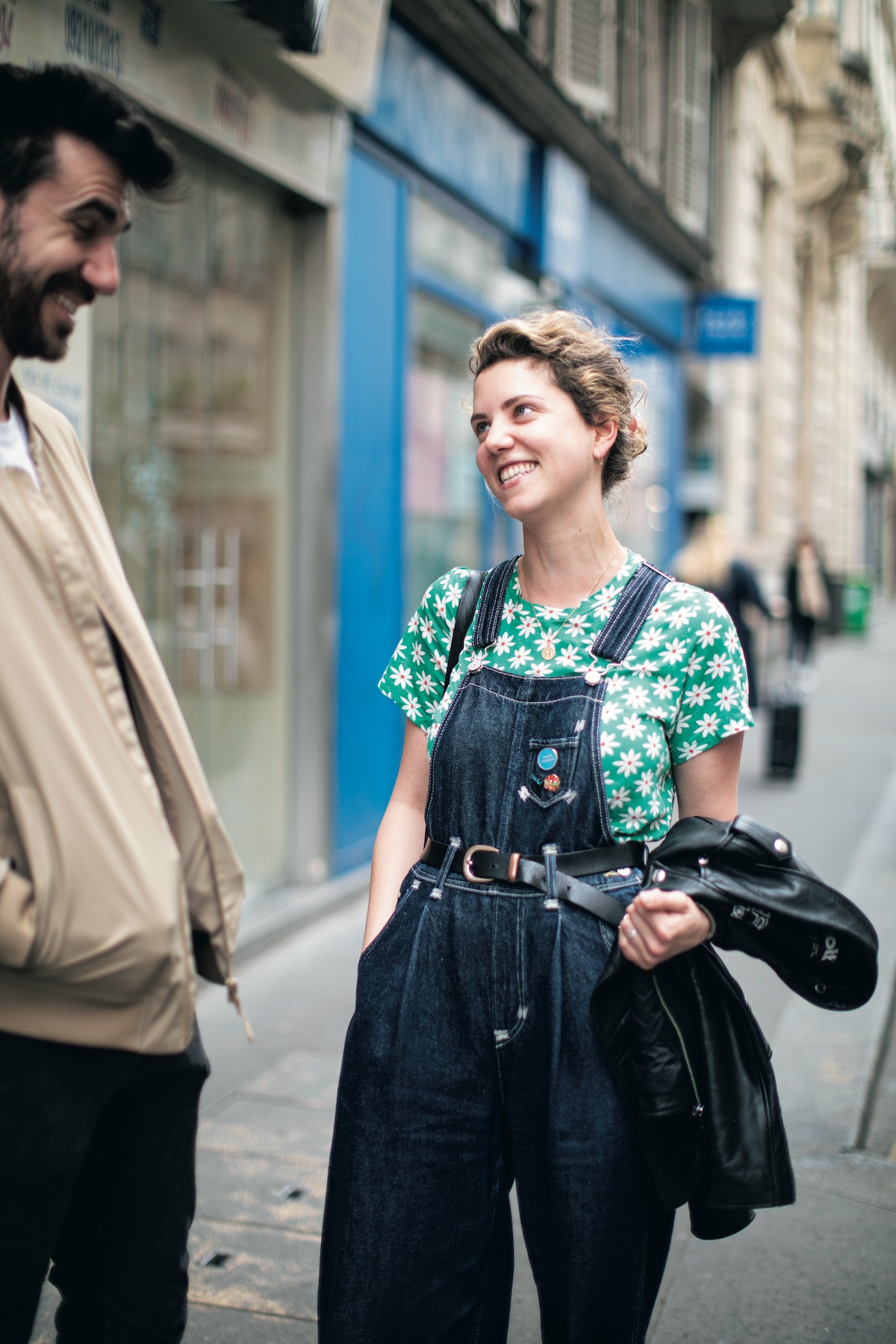 ジャケット/Schott、トップス/Monoprix、オーバーオール/Levi’s