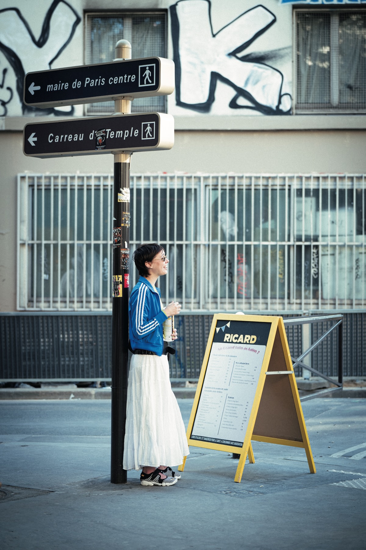ロンドンではお馴染みの《アディダス》のトラックジャケットは、今やここパリでも大人気。彼女やN0. 14のAliceみたいに、ロマンチックなスカートと合わせるのがパリジェンヌ流みたい。