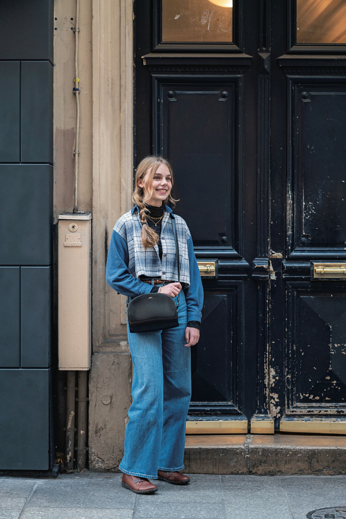 3連休の週末、シャンパーニュ地方から大好きな家族と一緒にパリ観光中。お洒落が大好きな彼女は、パリのショップ巡りが楽しくて仕方ないご様子。今日はお気に入りのシャツをデニムと合わせて、ワントーンでコーディネート。