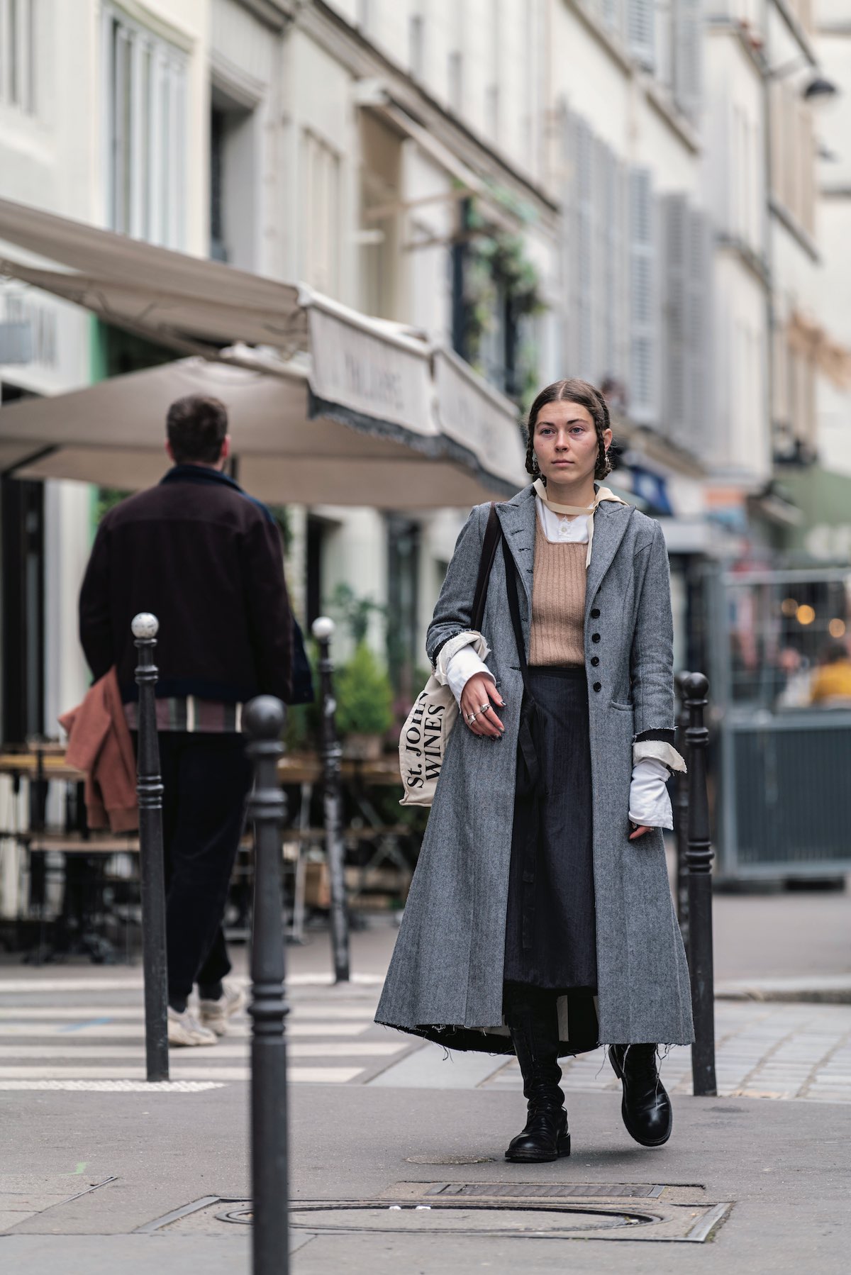 長年ファッションの仕事に携わり日本での勤務経験も持つ彼女は、自分に似合うスタイルを熟知するお洒落上級者。柔らかさと強さが共存する素敵な着こなしが、アンニュイなパリの情景にそっと馴染みながら、一際個性を放つ。