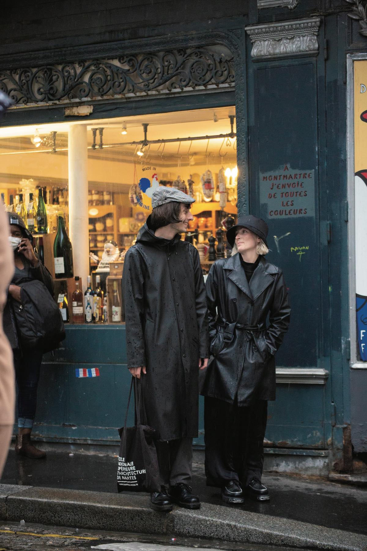レザーコートにワイドパンツを合わせたルーズなシルエット。ボリューミーなシューズで愛らしいバランスに。ウエストベルトをきゅっと結んで、スタイリッシュに着こなして。