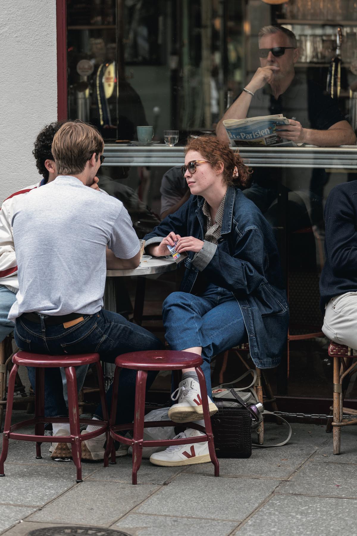難易度の高いデニムonデニムに挑戦するならば、彼女のように濃淡に変化をつけるのがおすすめ。ジャケットをオーバーサイズにすると、今っぽいシルエットになってこなれ感も漂う。