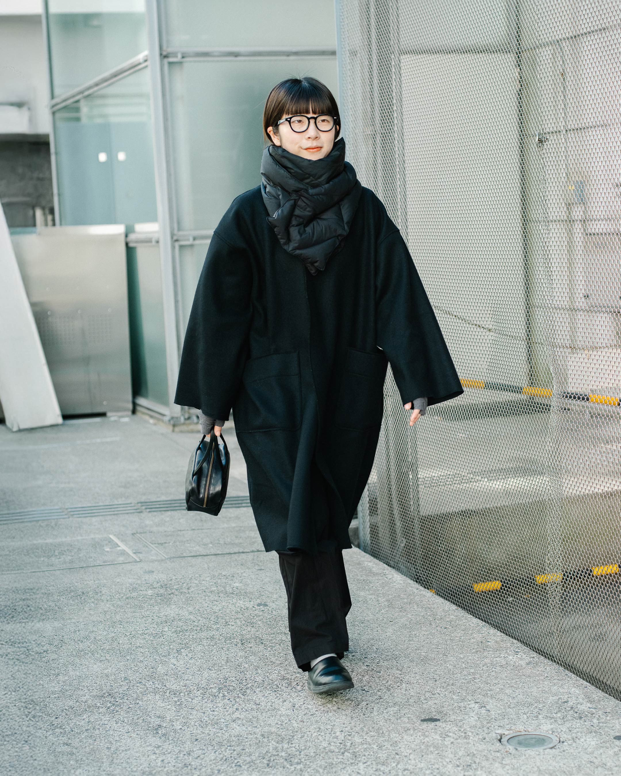 オールブラックコーデは、ゆるっとシルエットで柔らかさを出す。