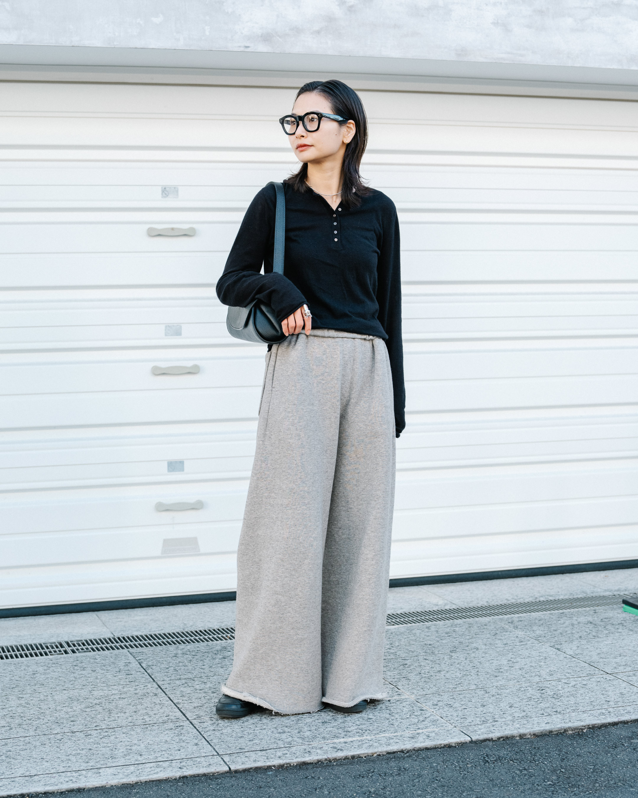 モノトーンコーデで作る春コーデ。裏起毛で暖かさも◎