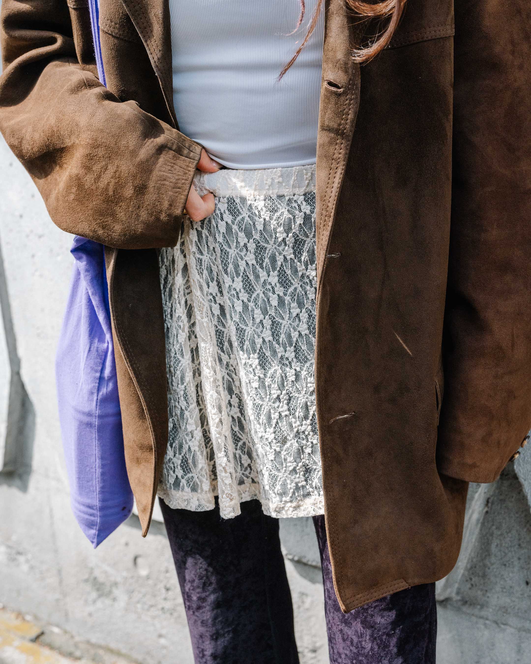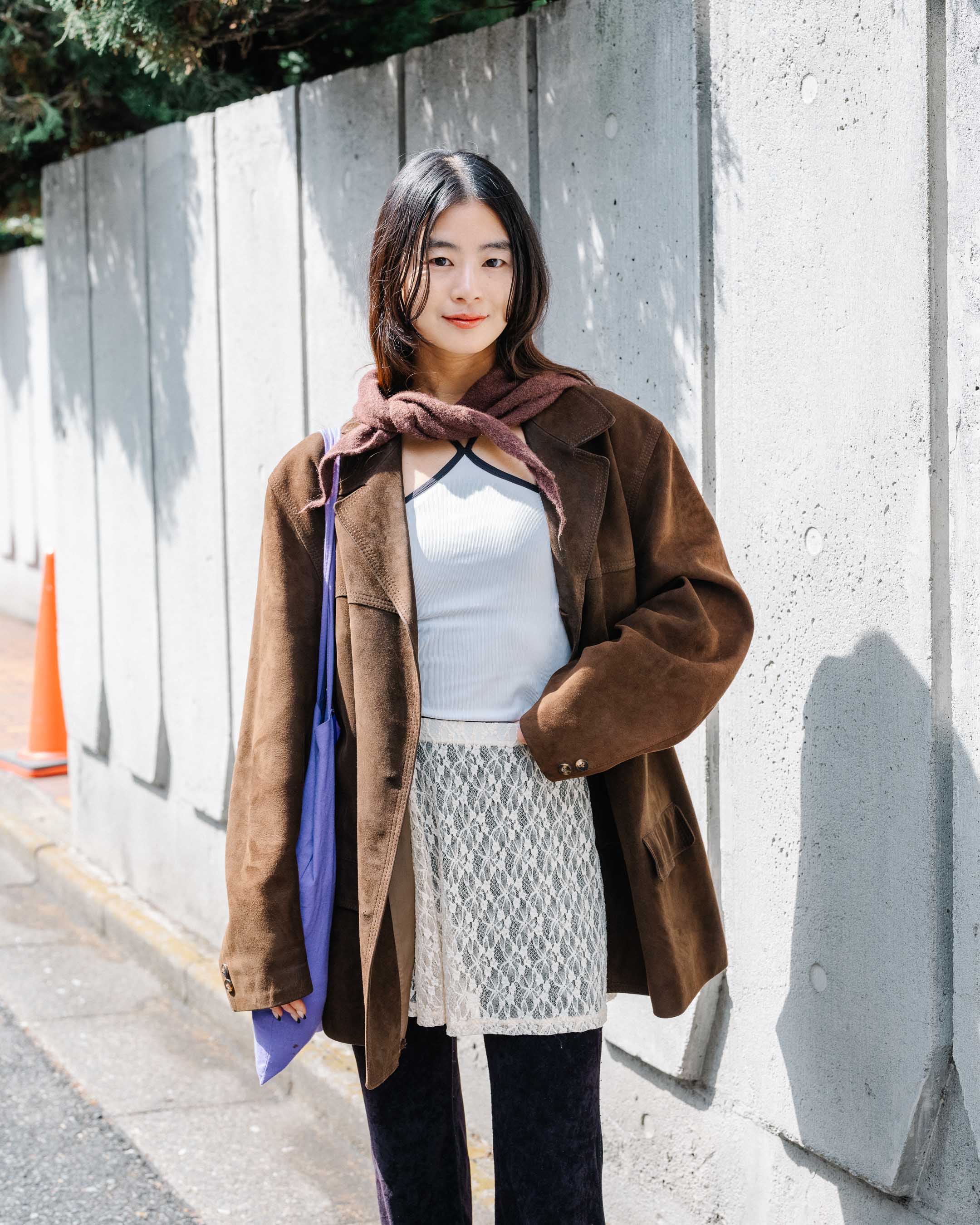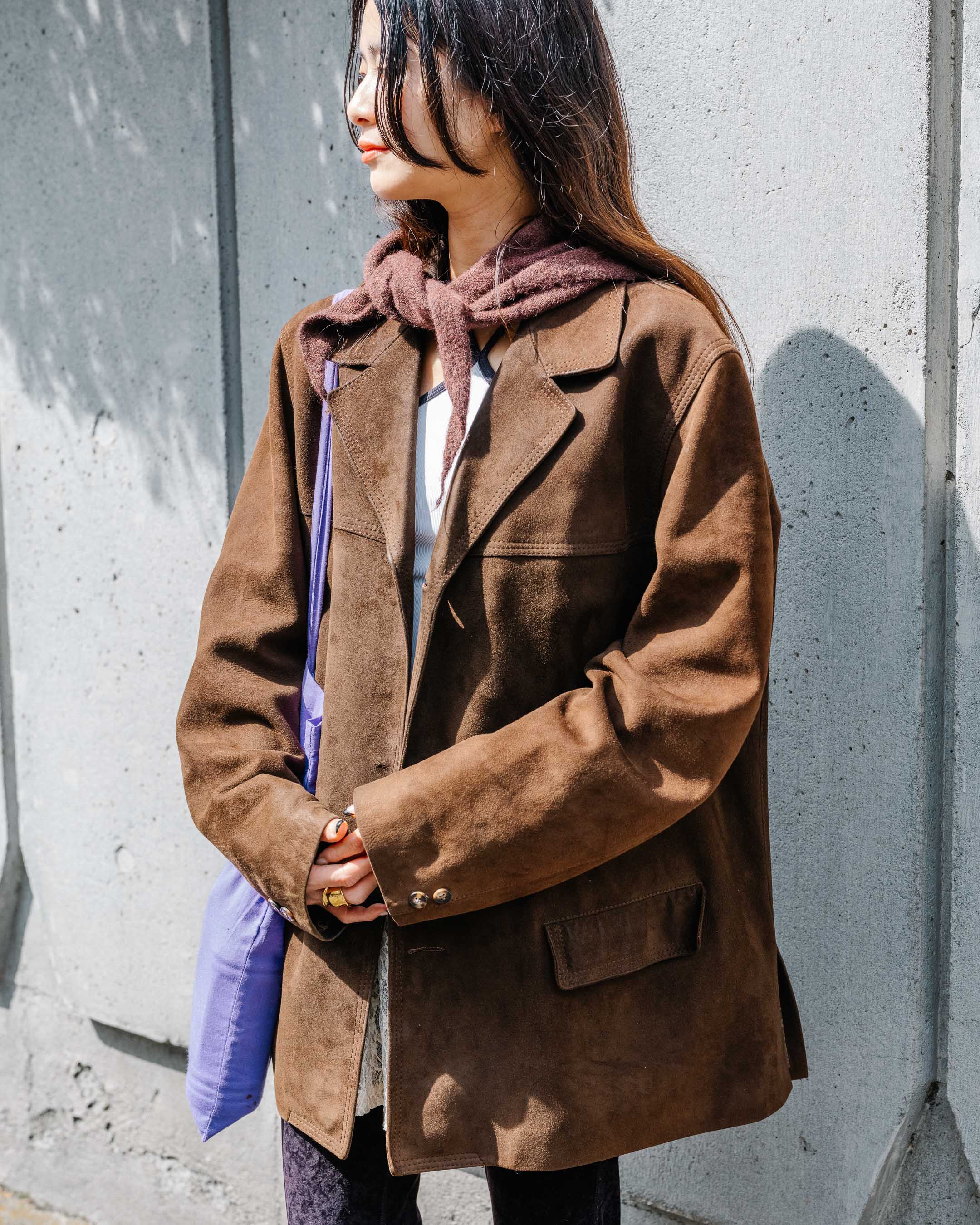 Vintageジャケットを春のムードに合わせて、ディテールや素材で遊ぶ。